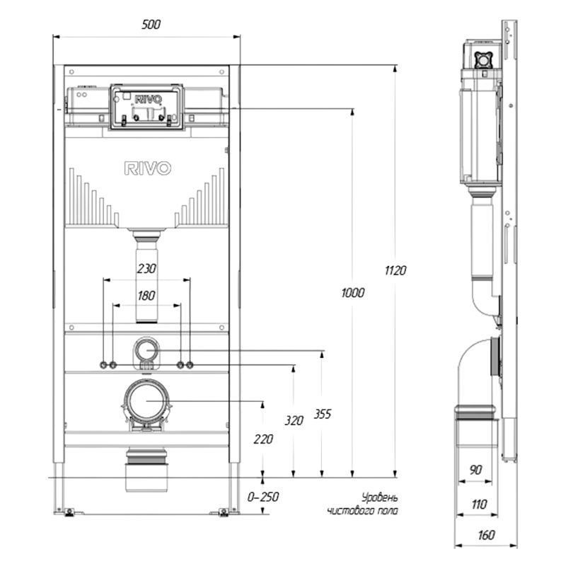 | Отвод унитаза DN 90, включая переходник DN 90/110 из PP: | в комплекте |