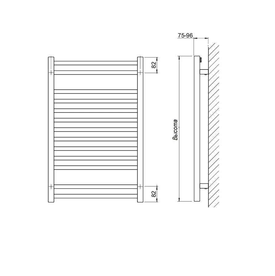 компактный размер.png Компактные габариты. Небольшие размеры позволяют установить электрополотенцесушитель даже в малогабаритной ванной комнате.
