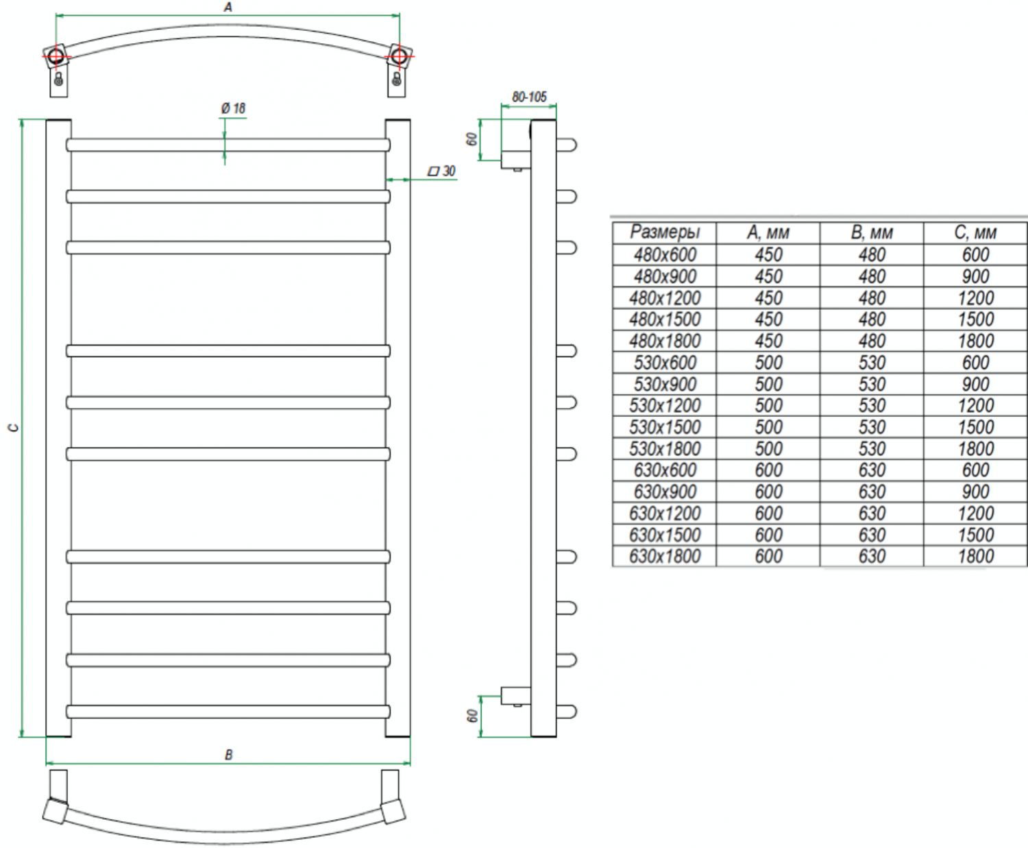 Большой выбор расцветок и размеров. Производитель предлагает эту модель во всех оттенках палитры RAL, а также с хромированным покрытием – зеркальным или матовым.