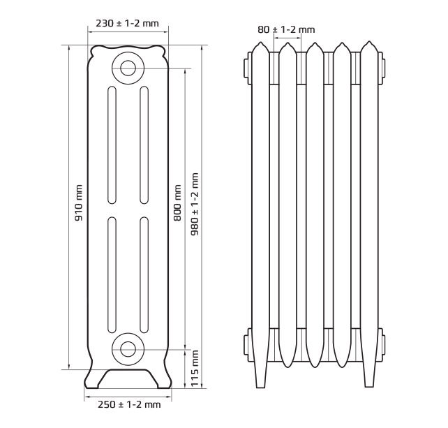 Дизайнерский чугунный радиатор Радимакс Bristol 800 (1 секция)