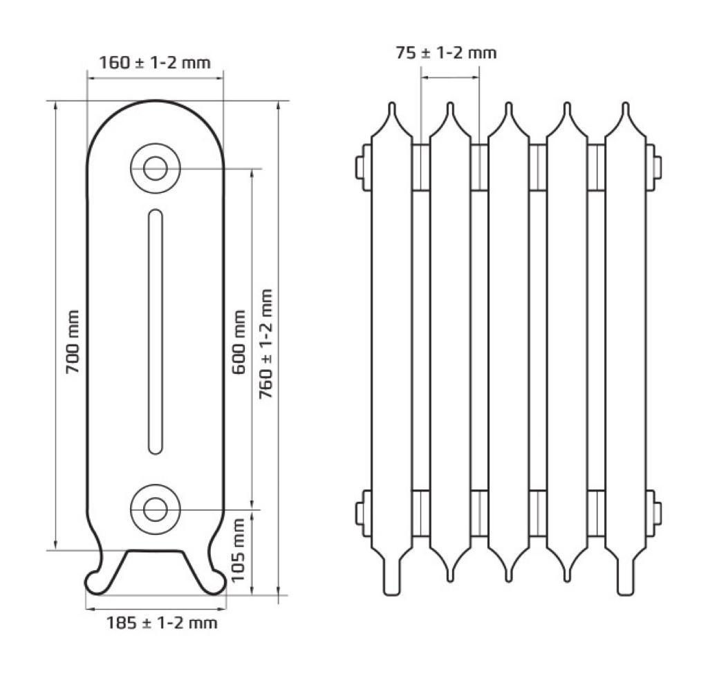 Дизайнерский чугунный радиатор Радимакс Troy 600 (1 секция)